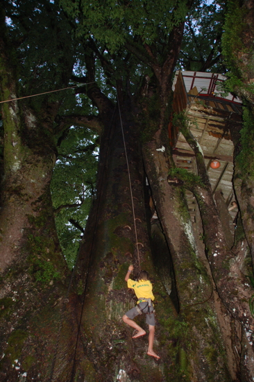 Grimpe sur le tronc d'un énorme arbre